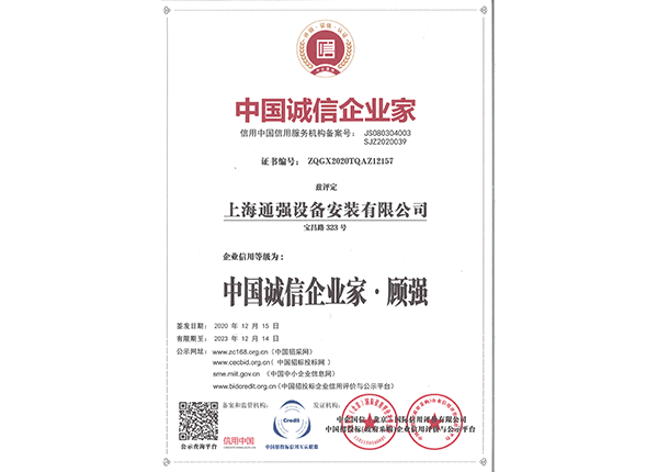上海通強設(shè)備安裝有限公司注冊資金2000萬元,資產(chǎn)總量為100000萬元的專業(yè)設(shè)備安裝公司,公司專業(yè)從事工業(yè)與民用建筑的設(shè)備安裝、非標設(shè)備的制作、鋼結(jié)構(gòu)制作安裝、中央空調(diào)系統(tǒng)的安裝,水電及管道的安裝。經(jīng)過20多年艱苦創(chuàng)業(yè)現(xiàn)已成為一個具有國家二級安裝資質(zhì),獲得上海市“重合同,守信用”的施工單位。